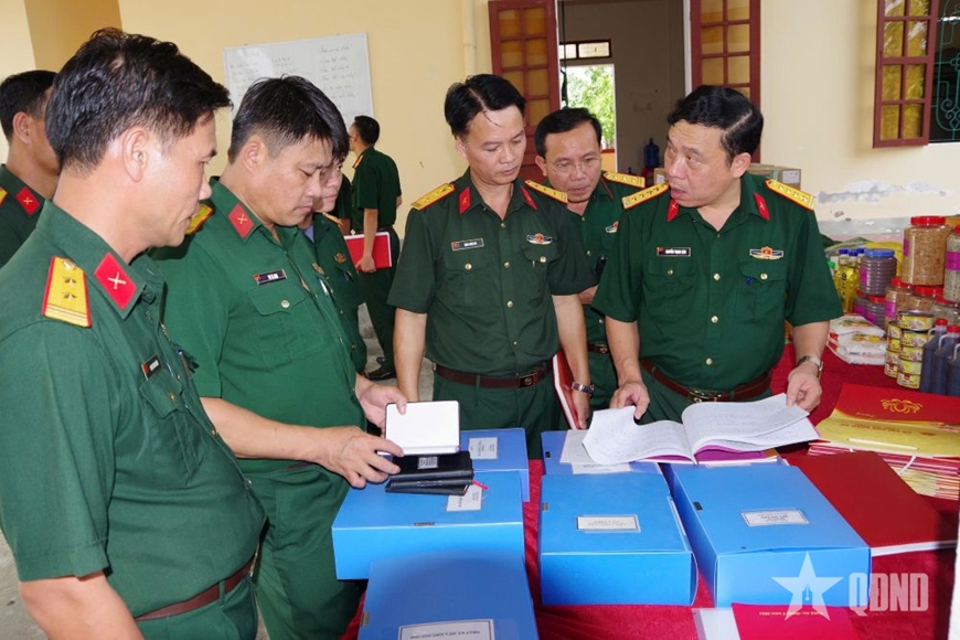 Kiểm tra hệ thống sổ sách công tác Đảng, công tác chính trị của Đội quy tập.