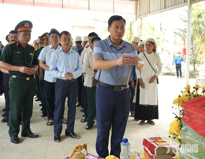 | Cán bộ và nhân dân dâng hương tri ân liệt sĩ. |