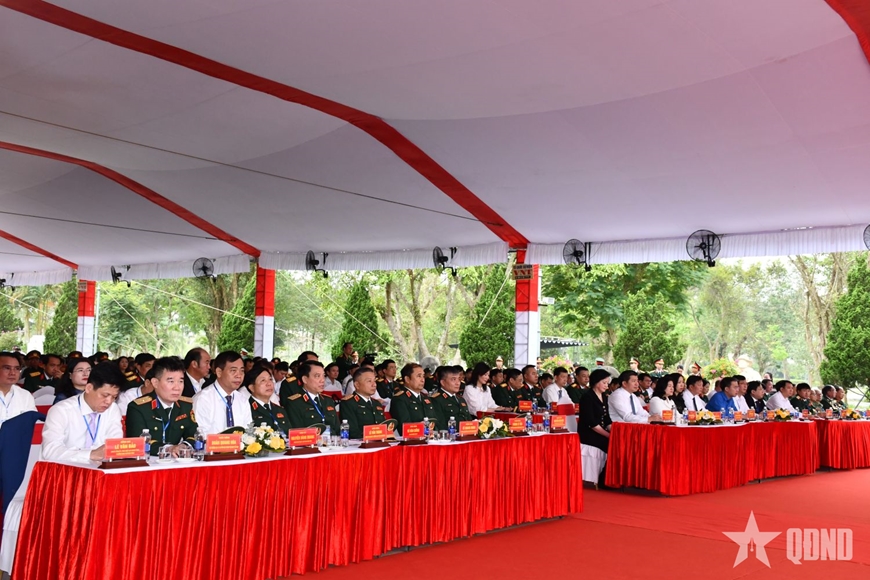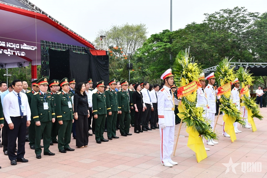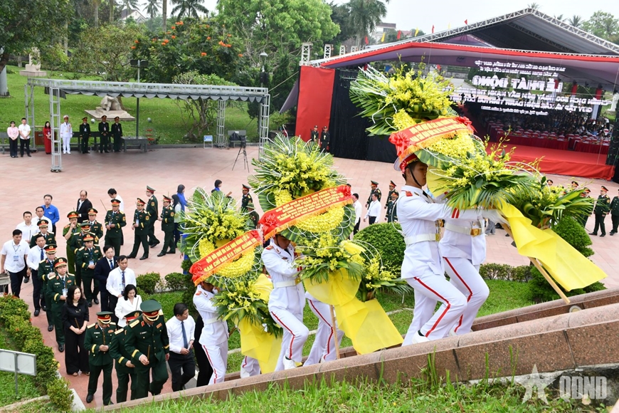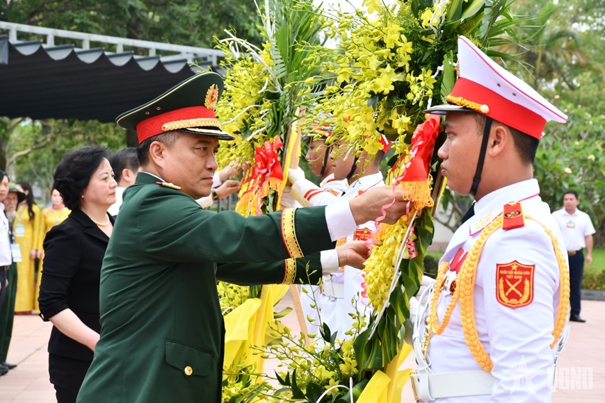 | Đoàn công tác Ban Chỉ đạo quốc gia về tìm kiếm, quy tập và xác định danh tính hài cốt liệt sĩ cùng các đại biểu dâng hoa, dâng hương tri ân các anh hùng liệt sĩ. |