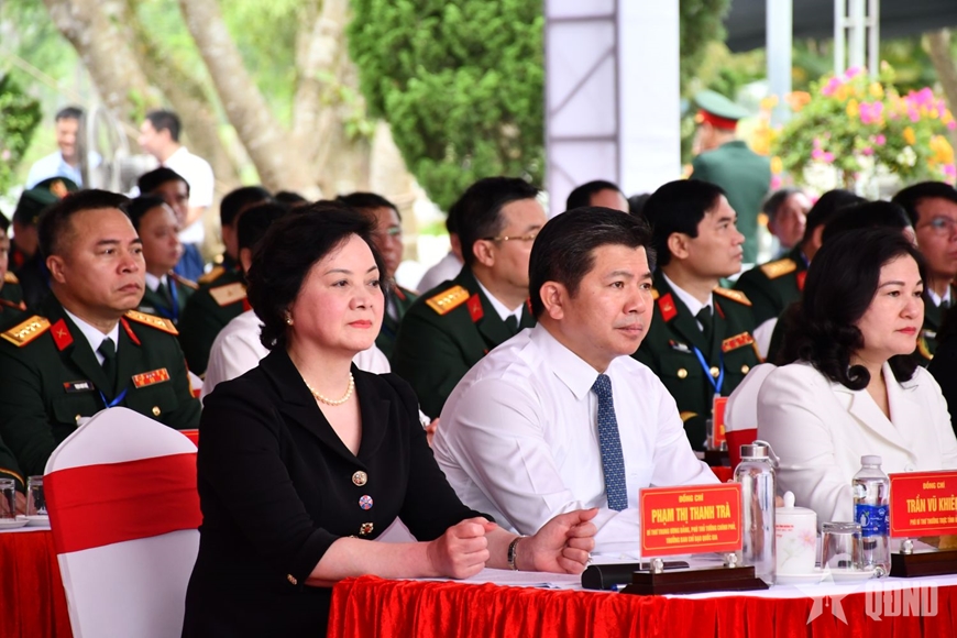 Trước đó, Phó thủ tướng Phạm Thị Thanh Trà cùng các đại biểu đã thành kính dâng hoa, dâng hương và dành phút mặc niệm tưởng nhớ, tri ân các anh hùng liệt sĩ tại Khu di tích lịch sử quốc gia đặc biệt Thành cổ Quảng Trị.
