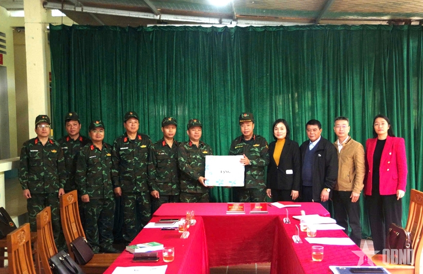 | Thiếu tướng Nguyễn Ngọc Ngân, Phó chủ nhiệm Chính trị, Phó trưởng Ban Chỉ đạo 515 Quân khu 2, tặng quà Đội tìm kiếm, quy tập hài cốt liệt sĩ Bộ CHQS tỉnh Tuyên Quang. |