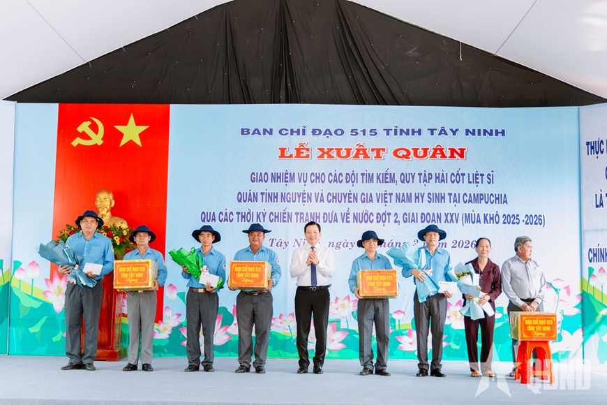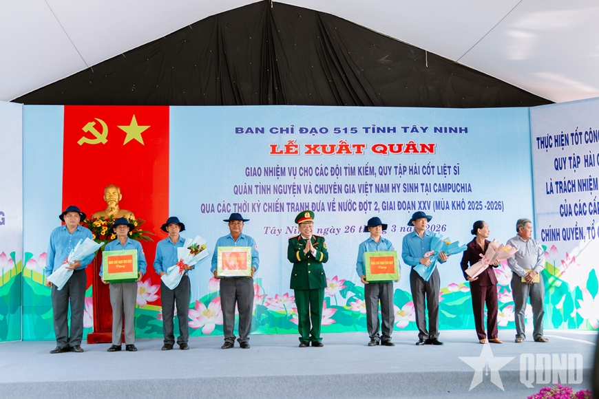 * Sáng cùng ngày, tại cửa khẩu Quốc tế Hoa Lư (tỉnh Đồng Nai), các đồng chí: Đại tá Thái Thành Đức, Phó chủ nhiệm Chính trị Quân khu 7, Phó trưởng Ban chỉ đạo 515 Quân khu 7; Lê Trường Sơn, Phó chủ tịch UBND tỉnh, Trưởng ban chỉ đạo 515 tỉnh Đồng Nai và các đại biểu đã dự Lễ xuất quân, giao nhiệm vụ cho các đội tìm kiếm, quy tập hài cốt liệt sĩ hy sinh tại Campuchia giai đoạn XXV (mùa khô 2025 - 2026).