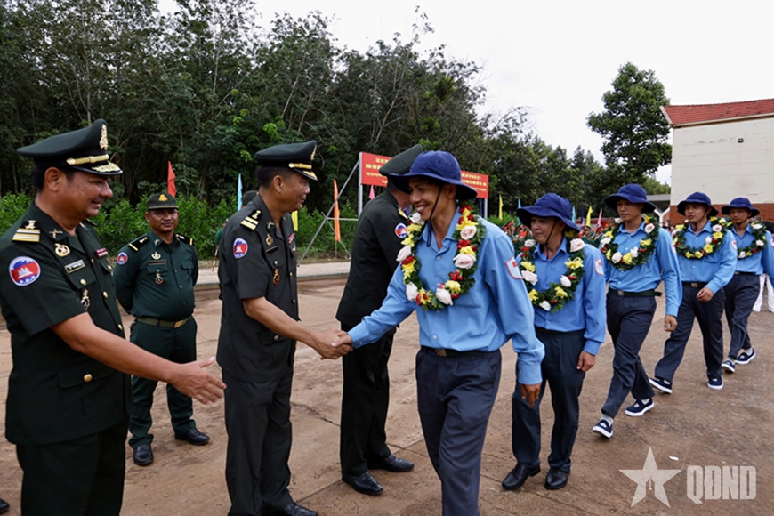 | Cán bộ, chiến sĩ các đơn vị Campuchia đón các đội K Quân khu 7 tại biên giới. |