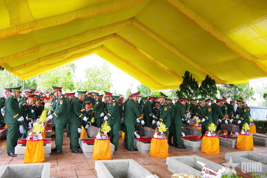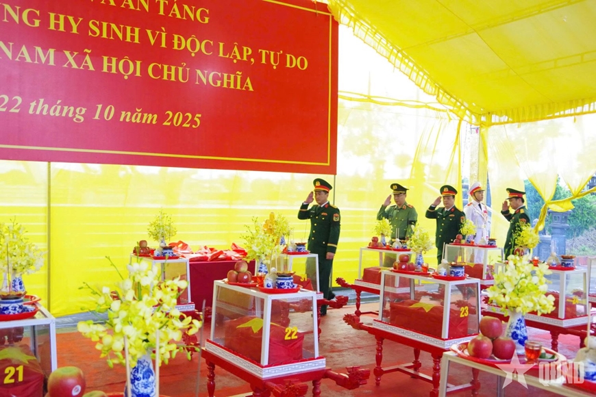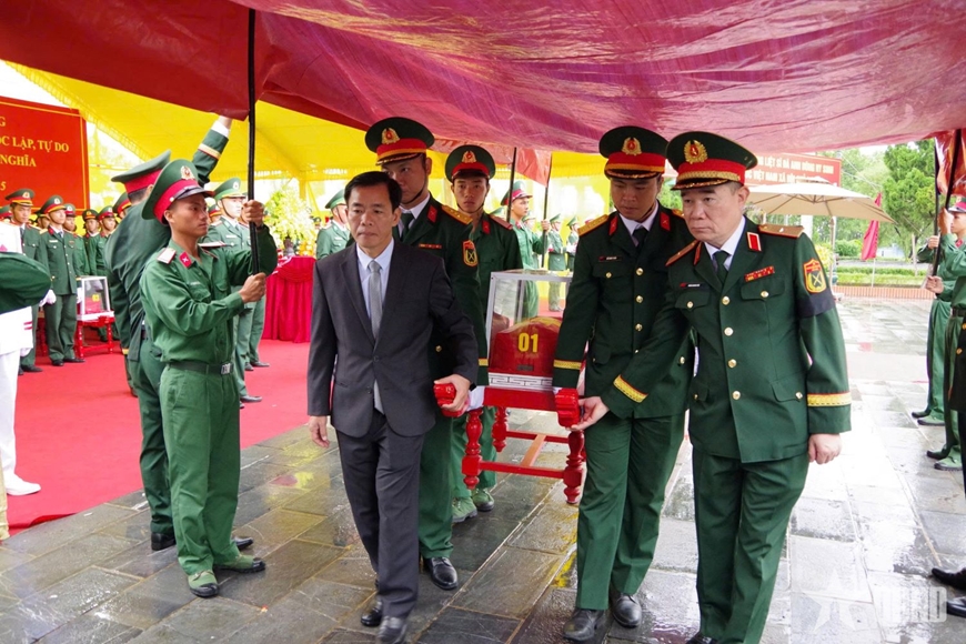 Sáng 22-10, tại Nghĩa trang Liệt sĩ phường Quảng Trị, Tỉnh ủy, HĐND, UBND, Ủy ban MTTQ Việt Nam tỉnh Quảng Trị trang trọng tổ chức lễ viếng, truy điệu và an táng 34 hài cốt liệt sĩ.
