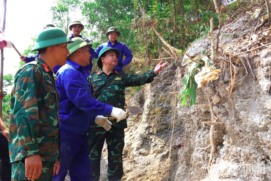 Cán bộ, nhân viên Đội tìm kiếm, quy tập hài cốt liệt sĩ Sư đoàn 968 (Quân khu 4) mở rộng khu vực tìm kiếm.