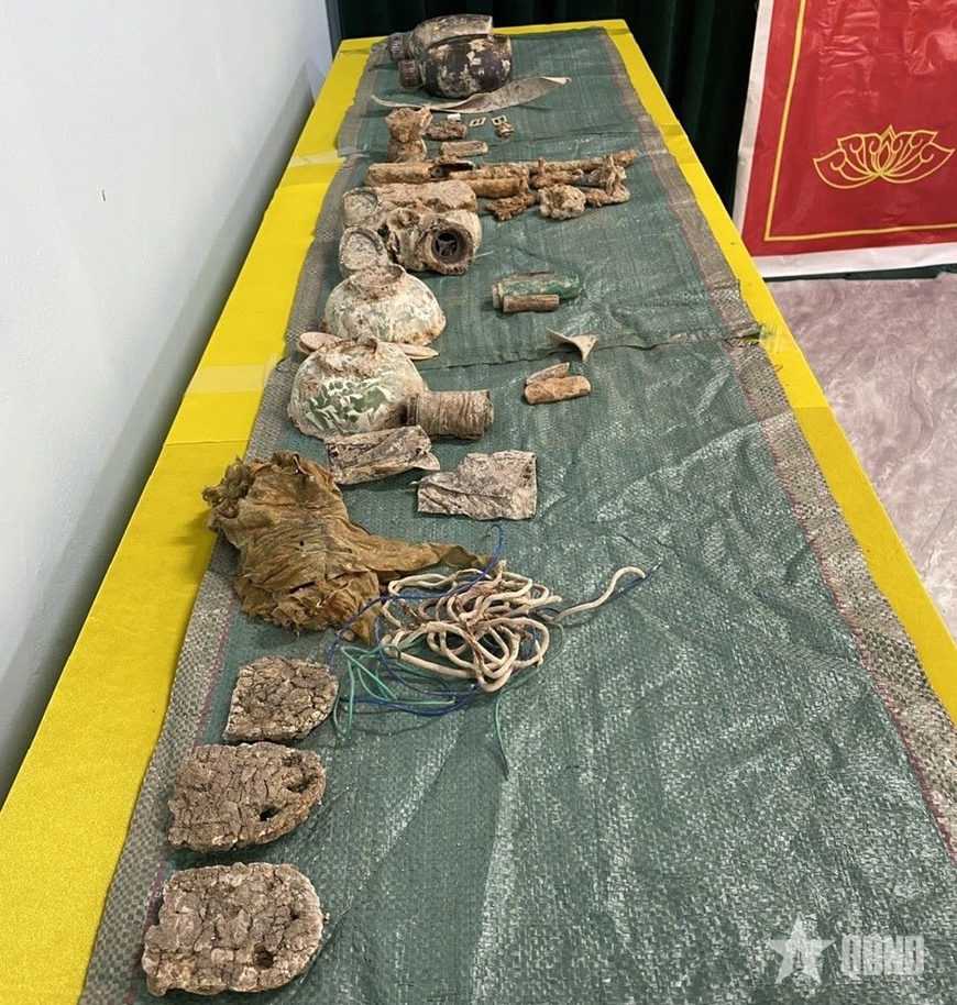 | Di vật được tìm thấy cùng các hài cốt liệt sĩ. |