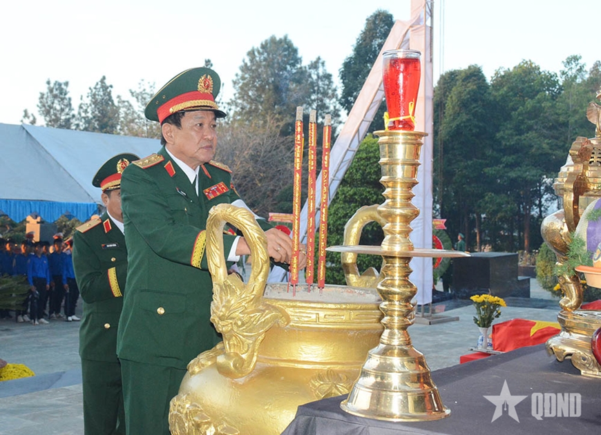 | Thượng tướng Võ Minh Lương dâng hương tại Nghĩa trang Liệt sĩ Bình Phước. |