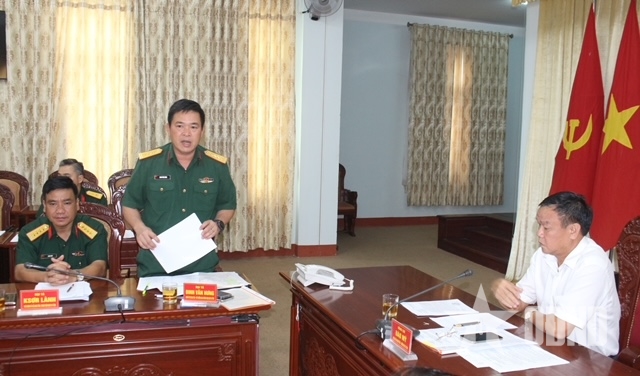 Đại tá Đinh Văn Hưng, Chính ủy Bộ CHQS tỉnh Đắk Lắk phát biểu tại hội nghị. |
