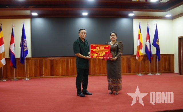 | Ban Chỉ đạo 515 tỉnh Đắk Lắk trao tiền hỗ trợ cho Ban Chuyên trách tỉnh Mondulkiri. |