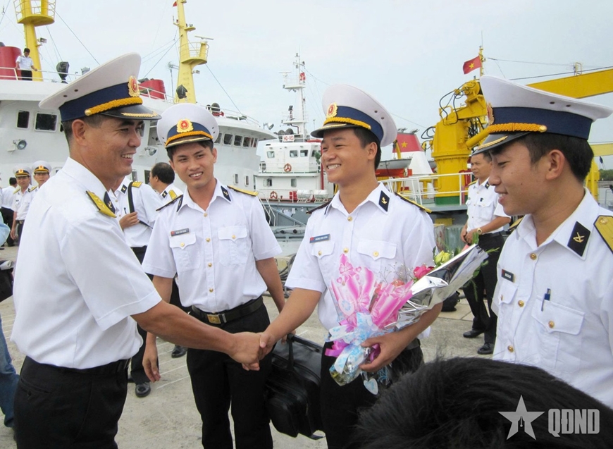 | Những sĩ quan trẻ vẫn hăng hái lên đường ra Nhà giàn DK1. Ảnh: Mai Thắng |
