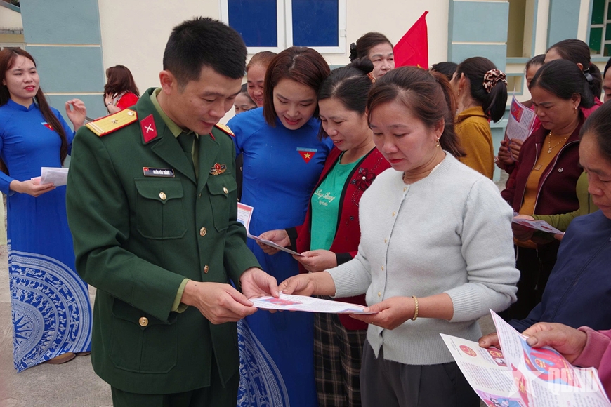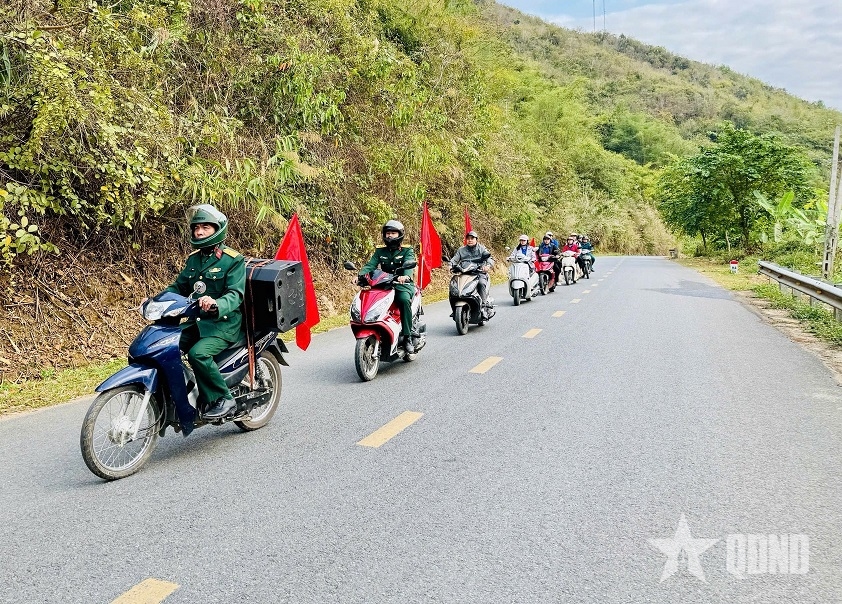 Thượng tá Lã Minh Thanh, Chủ nhiệm Chính trị Đoàn Kinh tế - Quốc phòng 5 cho biết: “Ở các xã vùng biên “cổng trời” Mường Lát, nơi nhiều thôn, bản còn xa trung tâm, việc tiếp cận thông tin của người dân vẫn còn hạn chế. Vì vậy, chúng tôi không chỉ làm nhiệm vụ bảo vệ chủ quyền, giữ gìn an ninh biên giới, giúp đồng bào phát triển kinh tế - xã hội, xóa đói giảm nghèo mà còn trở thành những “tuyên truyền viên”, mang thông tin về ngày hội lớn của đất nước đến với bà con”.