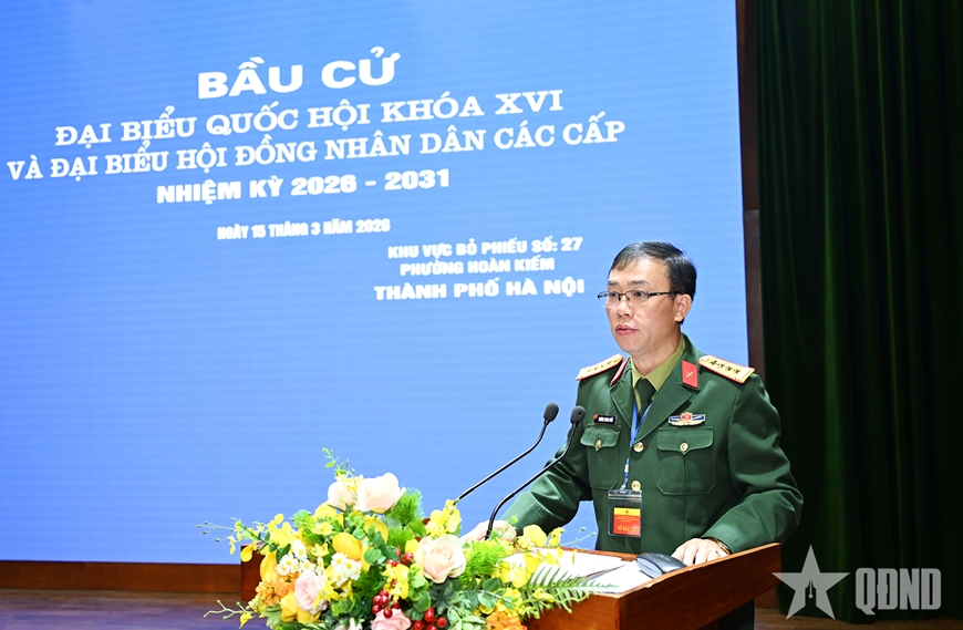 Sáng 15-3, cùng với cử tri cả nước, tại Khu vực bỏ phiếu số 27, phường Hoàn Kiếm, TP Hà Nội, đặt tại hội trường Điện ảnh Quân đội nhân dân (Tổng cục Chính trị), cử tri Cơ quan trực thuộc Tổng cục Chính trị phấn khởi thực hiện quyền và trách nhiệm công dân, bỏ phiếu bầu cử đại biểu Quốc hội khóa XVI và đại biểu Hội đồng nhân dân (HĐND) các cấp nhiệm kỳ 2026-2031.