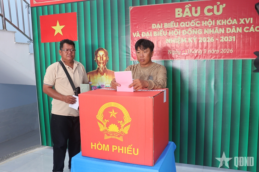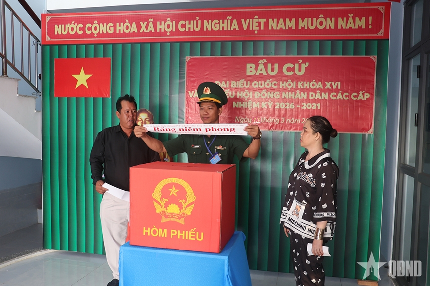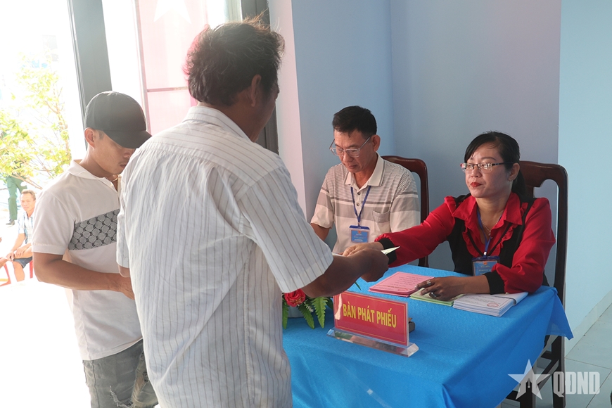 Lực lượng vũ trang đóng quân trên đảo Hòn Chuối (Cà Mau) tiến hành bỏ phiếu bầu.