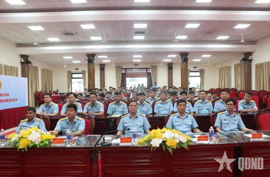 Khu vực bỏ phiếu rực rỡ cờ hoa, khẩu hiệu, pa nô tuyên truyền, tạo nên không khí trang trọng. Cán bộ, chiến sĩ có mặt đông đủ, tác phong nghiêm túc, thể hiện rõ niềm vinh dự, tự hào và tinh thần trách nhiệm khi trực tiếp thực hiện quyền, nghĩa vụ công dân của mình. Công tác tổ chức lễ khai mạc được tiến hành chặt chẽ, đúng nghi thức, thủ tục theo quy định. Tại điểm bầu cử số 24, cử tri tham gia bảo đảm quân số, chấp hành nghiêm quy định và hướng dẫn của tổ bầu cử.