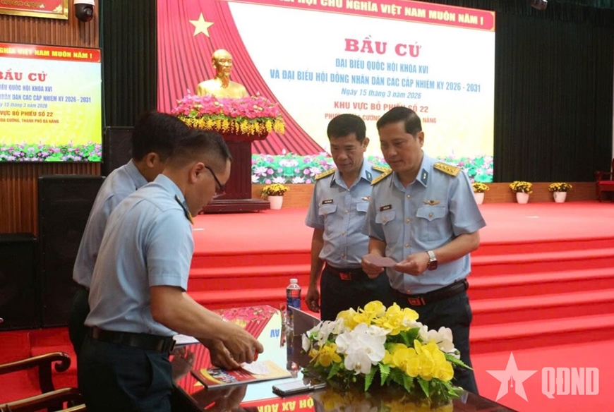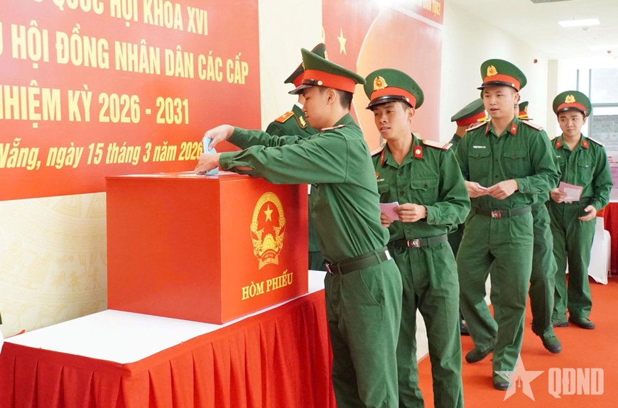 Sáng 15-3, tại điểm bầu cử số 24, cơ quan Bộ CHQS TP Đà Nẵng, cán bộ, chiến sĩ đơn vị nô nức tham gia bầu cử đại biểu Quốc hội khóa XVI và đại biểu HĐND các cấp nhiệm kỳ 2026-2031. Dự theo dõi có Đại tá Trần Hữu Ích, Ủy viên Ban Thường vụ Thành ủy, Chỉ huy trưởng Bộ CHQS TP Đà Nẵng.