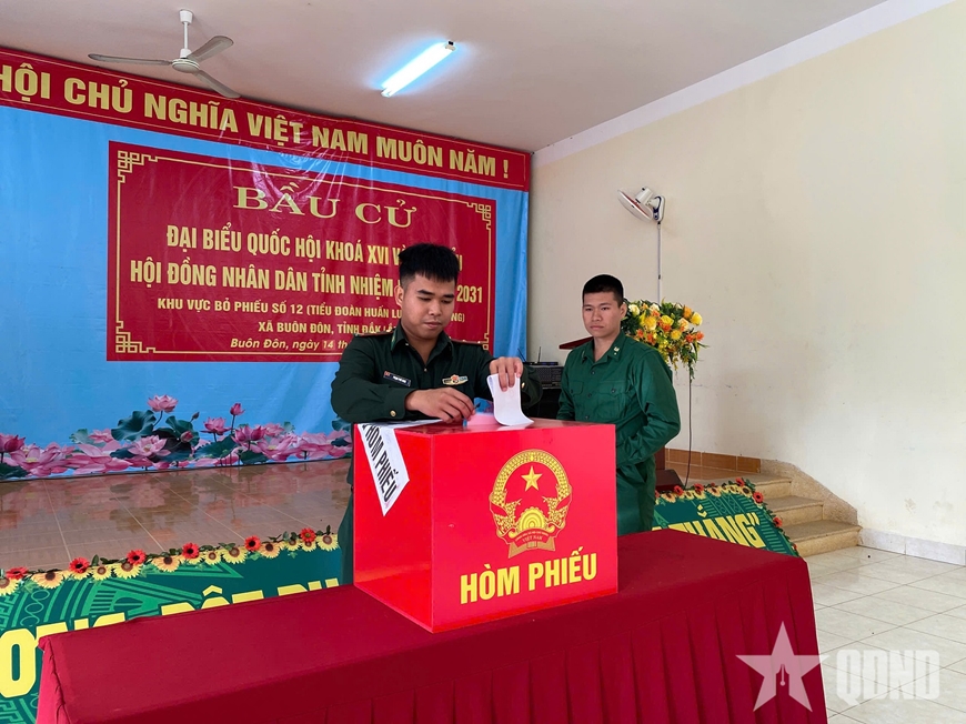 Đối với lực lượng Bộ đội Biên phòng, nhiệm vụ quản lý, bảo vệ chủ quyền lãnh thổ, an ninh biên giới quốc gia luôn đặt lên hàng đầu. Trên tuyến biên giới đất liền của tỉnh Đắk Lắk dài hơn 71km, cán bộ, chiến sĩ các đồn biên phòng thường xuyên duy trì chế độ tuần tra, kiểm soát, trực sẵn sàng chiến đấu 24/24 giờ. Chính vì vậy, cùng với việc tổ chức bầu cử tập trung tại đơn vị, các tổ bầu cử đã triển khai biện pháp linh hoạt, bảo đảm mọi quân nhân đều được tham gia bỏ phiếu.