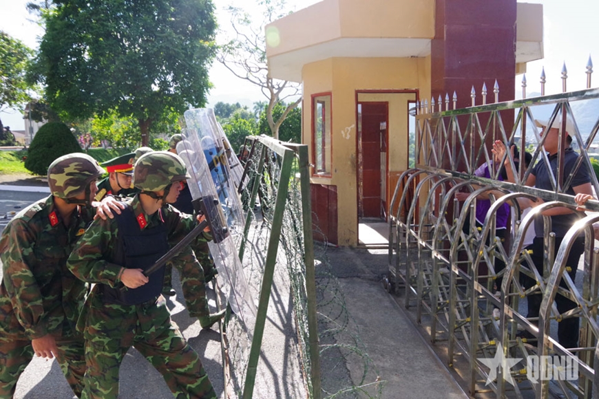 | Cán bộ, chiến sĩ Bộ CHQS tỉnh Lai Châu luyện tập phương án sẵn sàng chiến đấu bảo vệ bầu cử. |