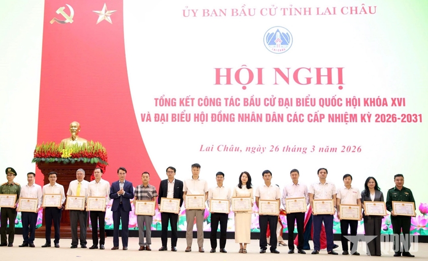 Tại hội nghị, lãnh đạo tỉnh Lai Châu đã trao khen thưởng, tặng 14 tập thể và 65 cá nhân có thành tích xuất sắc trong công tác bầu cử.