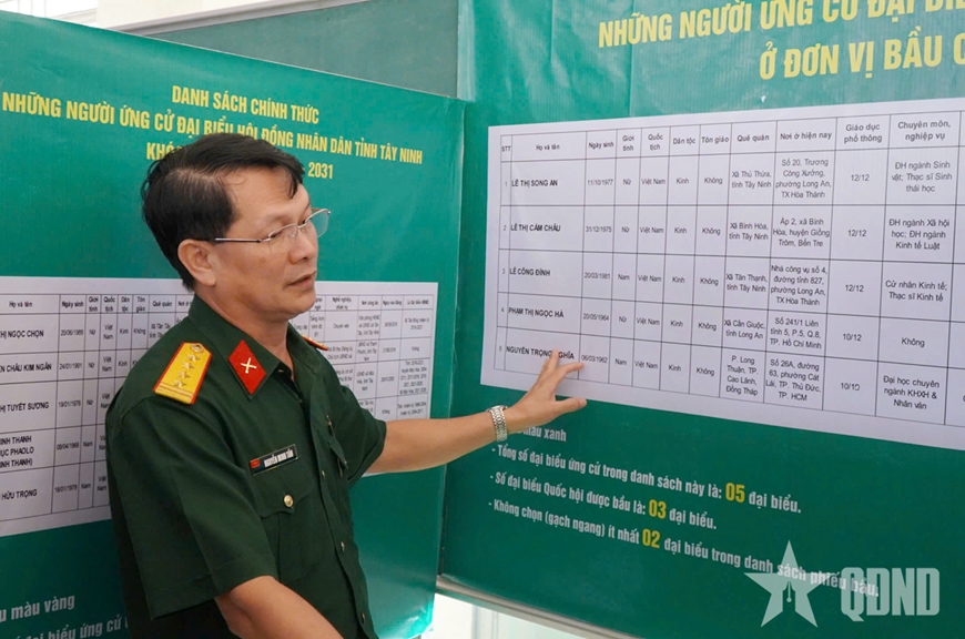 Tại tỉnh Tây Ninh, LLVT tỉnh có 6 điểm bỏ phiếu riêng. Ghi nhận tại Tiểu đoàn 1 (Trung đoàn 738) và Tiểu đoàn 14 (Trung đoàn 174), danh sách ứng cử viên đã được niêm yết công khai; tổ phục vụ bầu cử được phân công nhiệm vụ cụ thể. Lần đầu tiên được cầm lá phiếu trên tay khi đang thực hiện nghĩa vụ quân sự, Hạ sĩ Trần Quốc Tuấn (Tiểu đoàn 14) tự hào chia sẻ: “Qua tuyên truyền của đơn vị, tôi hiểu rõ hơn ý nghĩa của lá phiếu và trách nhiệm của người lính đối với đất nước”.