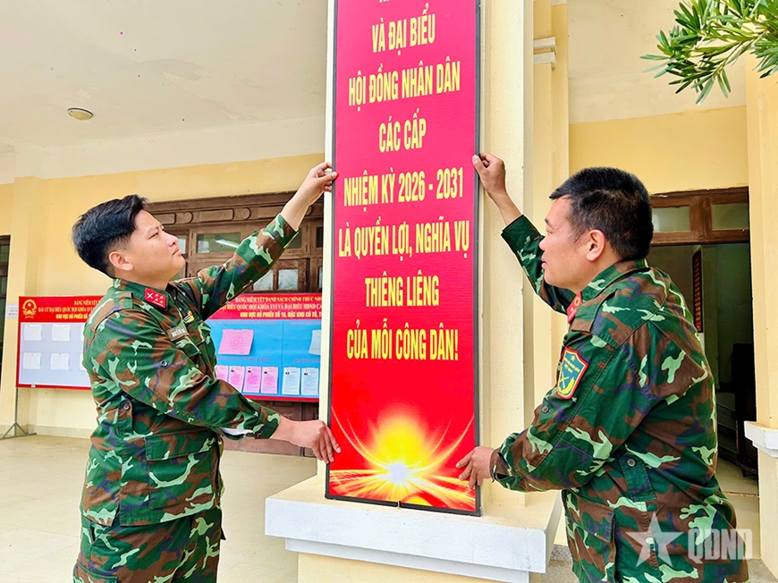 Những ngày này, trên tuyến đảo Đông Bắc của Tổ quốc, trong khuôn viên doanh trại các đơn vị thuộc Lữ đoàn 242 (Quân khu 3) luôn rực rỡ cờ hoa, băng rôn, khẩu hiệu tuyên truyền về ngày bầu cử. Tại các khu nhà làm việc, nhà ở của bộ đội, hệ thống pa-nô, áp phích được bố trí trang trọng với nhiều nội dung sinh động, dễ hiểu, nhấn mạnh ý nghĩa chính trị sâu sắc của ngày bầu cử cũng như quyền và nghĩa vụ của công dân.