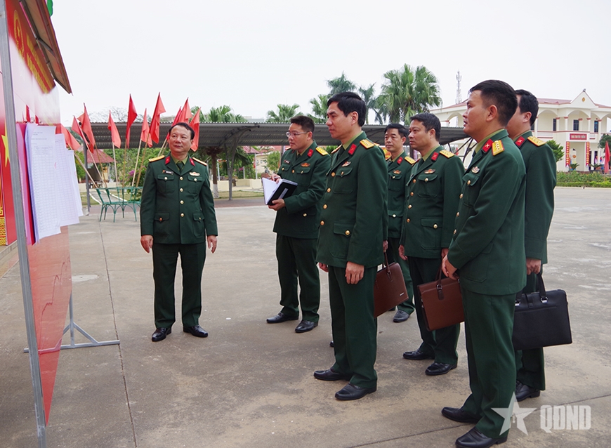 | Đại tá Hồ Sỹ Quyện, Phó chủ nhiệm Chính trị Quân khu 3 kiểm tra công tác chuẩn bị bầu cử tại Trung đoàn 50, Bộ CHQS TP Hải Phòng. |