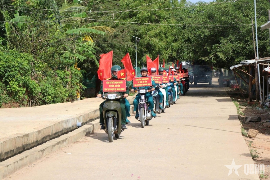 Bên cạnh đó, thông qua hoạt động dân vận trên 13 địa bàn xã, phường, các cơ quan, đơn vị đã tổ chức 7 buổi tuyên truyền thu hút hơn 2.800 lượt người tham gia, góp phần nâng cao nhận thức của nhân dân về quyền và nghĩa vụ của công dân. Đặc biệt, Bộ CHQS tỉnh Khánh Hòa đã tổ chức xe tuyên truyền cơ động gắn loa công suất lớn đến các xã, phường, thôn, tổ dân phố để hướng dẫn cử tri. Hoạt động này được triển khai trên 9 địa bàn với quãng đường hơn 1.420km, đưa thông tin bầu cử đến gần hơn với cán bộ, chiến sĩ và nhân dân.
