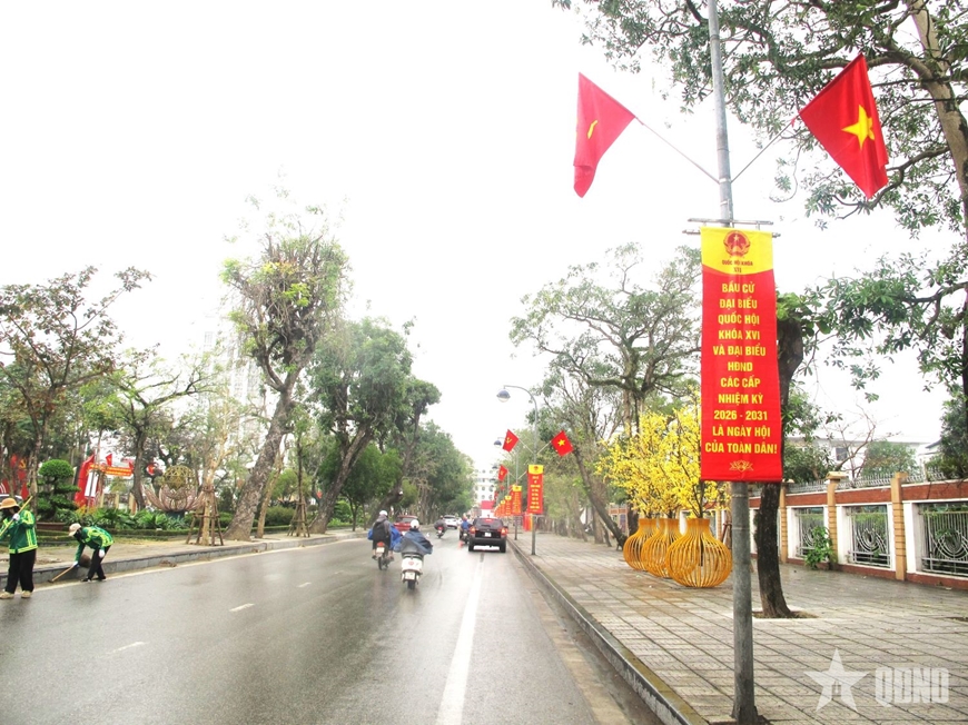 | Đường phố tại phường Thành Vinh được trang trí rực rỡ cờ hoa, sạch đẹp hướng tới ngày bầu cử. |
