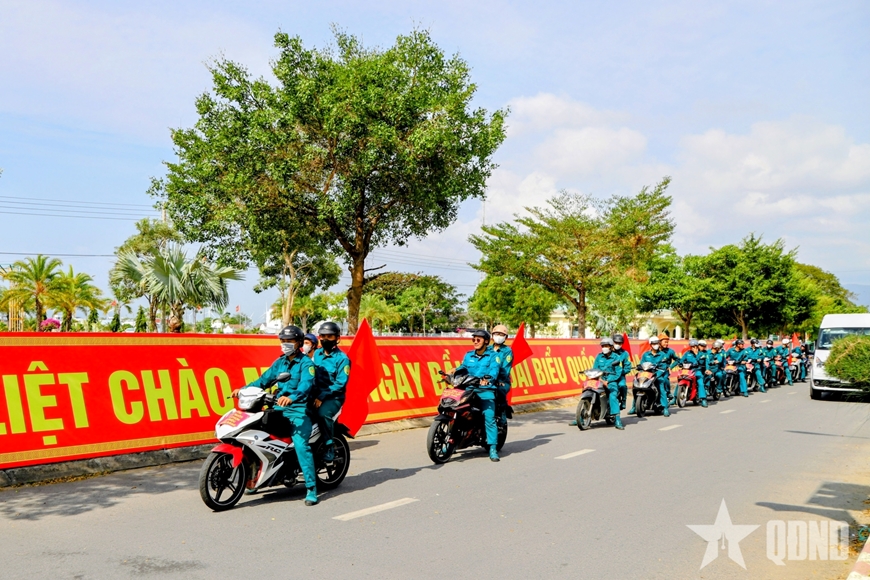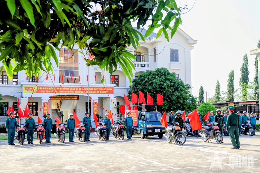 Sau hội nghị, cán bộ, chiến sĩ lực lượng dân quân thường trực tổ chức diễu hành tuyên truyền lưu động bằng xe máy trên các trục đường chính của địa phương.