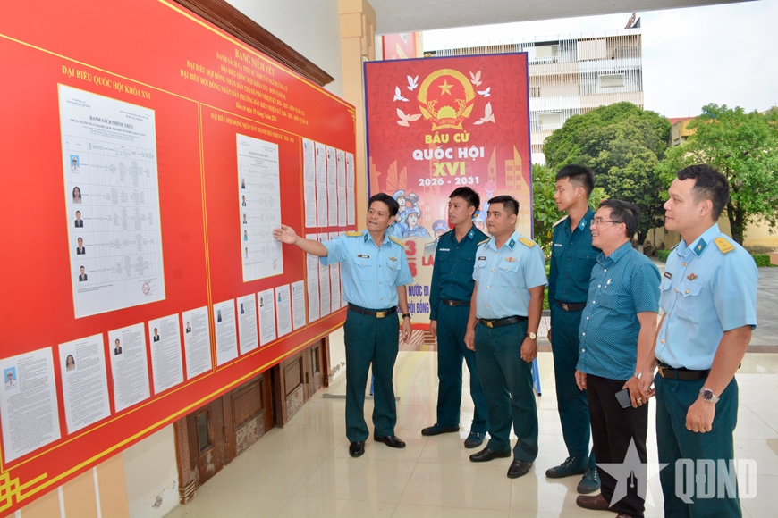 | Cán bộ, chiến sĩ Sư đoàn Phòng không 367 và nhân dân địa phương nghiên cứu tiểu sử, quá trình công tác của các ứng cử viên. |