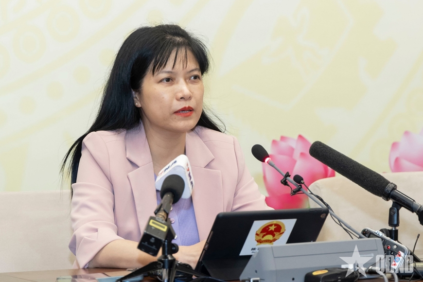 | Đồng chí Tạ Thị Yên cung cấp thông tin tại Trung tâm báo chí. |