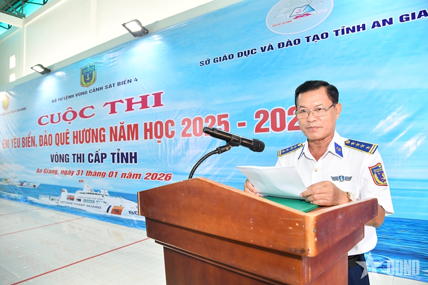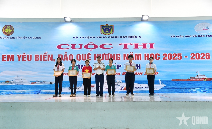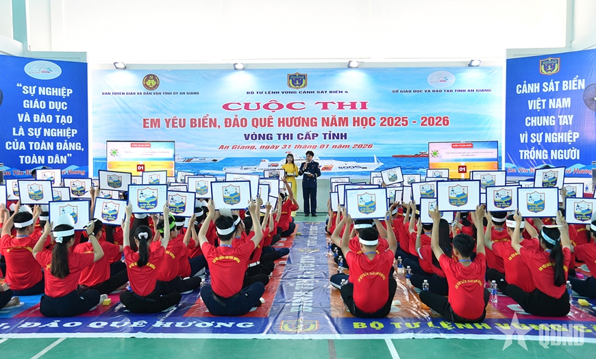 Ngày 31-1, tại phường Rạch Giá, tỉnh An Giang, Bộ tư lệnh Vùng Cảnh sát biển 4 phối hợp với Ban Tuyên giáo và Dân vận tỉnh ủy, Sở Giáo dục và Đào tạo tỉnh An Giang tổ chức Vòng thi cấp tỉnh Cuộc thi “Em yêu biển, đảo quê hương” năm học 2025 - 2026 dành cho học sinh THCS các xã, phường ven biển trên địa bàn.