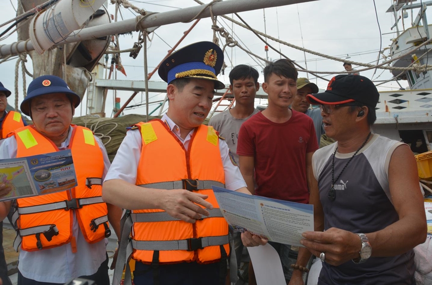 Trung tướng Bùi Quốc Oai, Bí thư Đảng ủy, Chính ủy Cảnh sát biển Việt Nam trực tiếp kiểm tra, tuyên truyền về phòng, chống IUU tại vùng biển Tây Nam.
