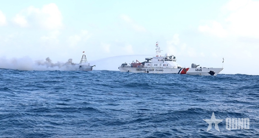 Dù trong điều kiện thời tiết nào, những con tàu Cảnh sát biển (CSB) Việt Nam vẫn luôn đồng hành với ngư dân vươn khơi, bám biển. Những lá cờ Tổ quốc, những thùng nước sạch đóng chai cùng nhu yếu phẩm và tờ rơi pháp luật được cán bộ, chiến sĩ trên các tàu của Vùng CSB 4 trao tận tay ngư dân trên biển.