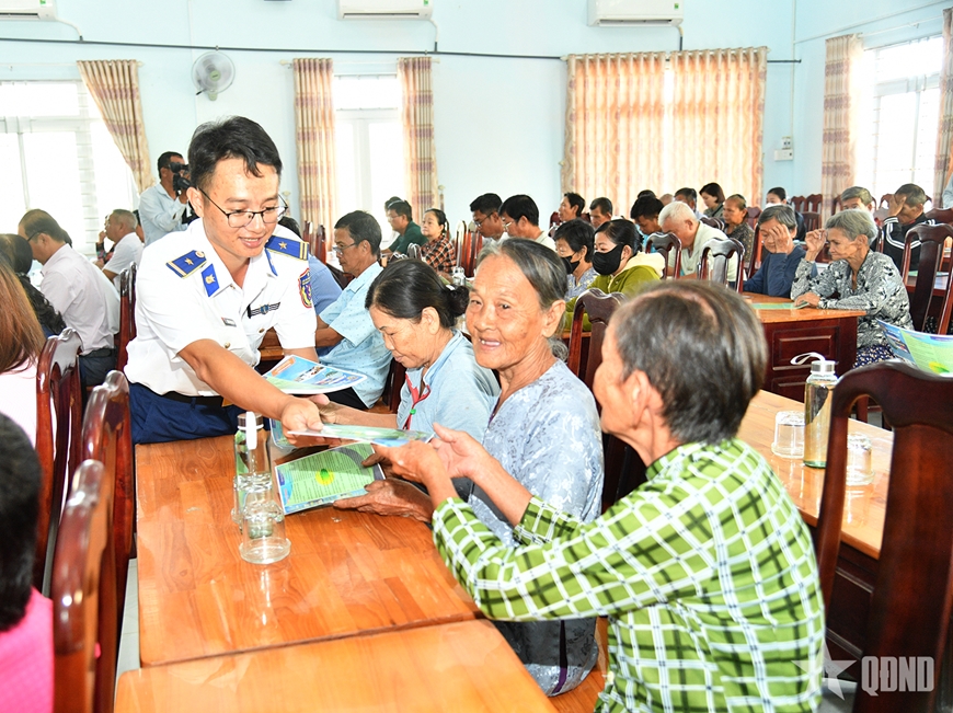 Hơn 200 cán bộ và người dân địa phương đã được phổ biến, tuyên truyền các kiến thức pháp luật về biển đảo, góp phần nâng cao nhận thức trong công tác bảo vệ chủ quyền. Hơn 1.000 tờ rơi, 200 cuốn sổ tay tuyên truyền cùng 150 đầu sách pháp luật được phát miễn phí, giúp người dân dễ dàng tiếp cận và hiểu rõ hơn về quyền lợi cũng như trách nhiệm của mình. Bên cạnh đó, 500 lá cờ Tổ quốc và 50 bức ảnh Bác Hồ được trao tận tay ngư dân như một lời nhắn gửi ý nghĩa: “Tổ quốc luôn đồng hành cùng ngư dân trên từng chuyến ra khơi”.