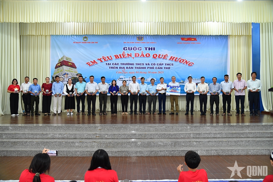 100 học sinh xuất sắc bước vào cuộc thi trực tiếp "Em yêu biển đảo quê hương" do Bộ tư lệnh Vùng Cảnh sát biển 4 phối hợp với Ban Dân vận và Tuyên giáo, Sở Giáo dục-Đào tạo TP Cần Thơ và UBND phường Vĩnh Châu tổ chức.