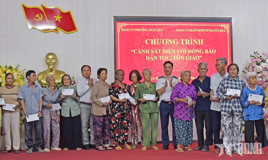Dịp này, Đảng ủy Đoàn Đặc nhiệm Phòng, chống tội phạm ma túy số 4 đã trao 20 suất quà tặng gia đình chính sách, đồng bào Khmer; 13 suất quà tặng các gia đình có hoàn cảnh khó khăn; 20 suất quà tặng học sinh có hoàn cảnh khó khăn (mỗi suất trị giá 1 triệu đồng) và trao 100 lá cờ Tổ quốc tặng Đảng ủy phường An Xuyên.