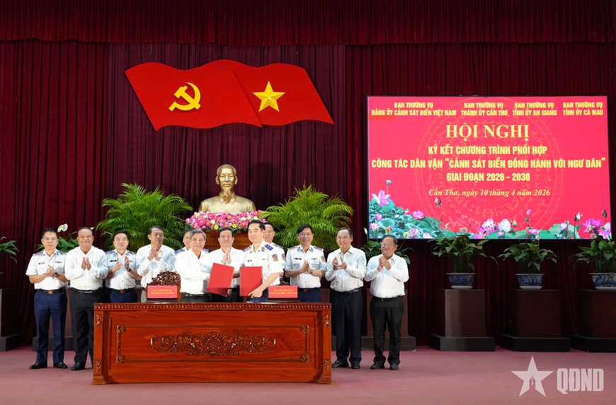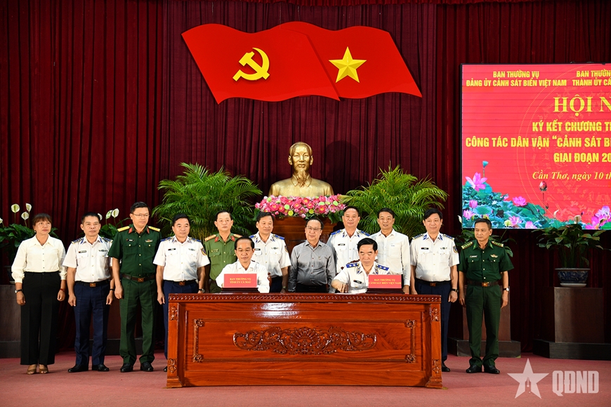 | Cảnh sát biển Việt Nam và Ban thường vụ Thành ủy Cần Thơ ký kết chương trình phối hợp. |