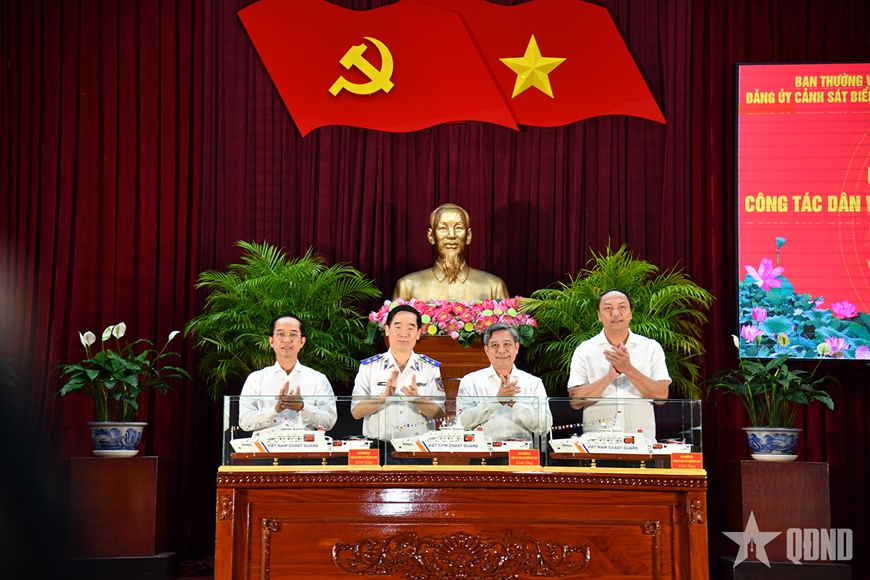 | Cảnh sát biển Việt Nam trao quà tặng các tỉnh, thành phố trong chương trình ký kết. |