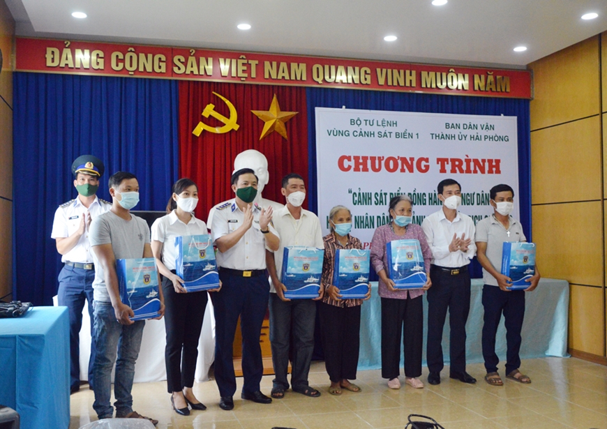 | Bộ tư lệnh Vùng Cảnh sát biển 1 phối hợp cùng địa phương trao quà hỗ trợ các gia đình chính sách trên địa bàn huyện Vĩnh Bảo (Hải Phòng) dịp 27-7-2021. |