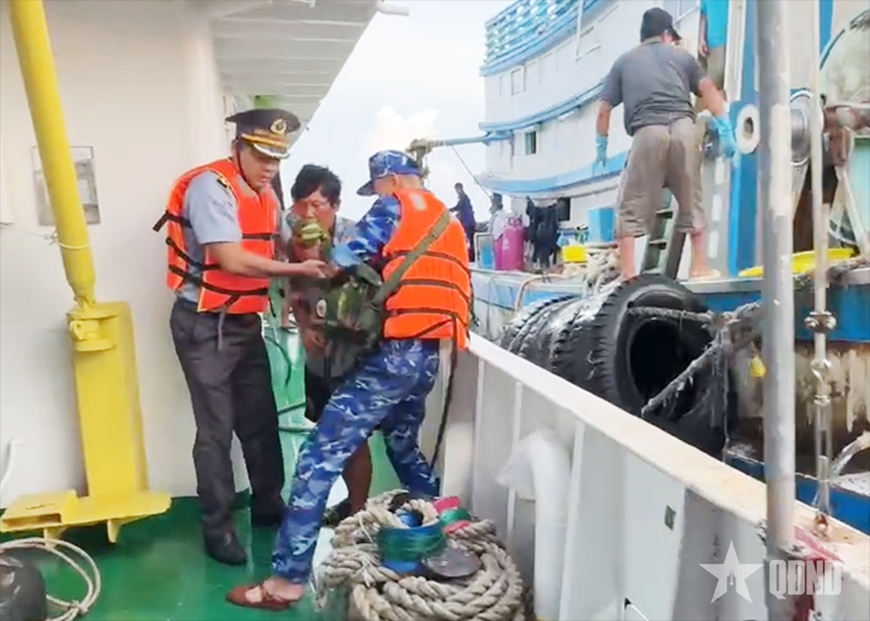 Ngay sau khi tiếp nhận thông tin, chỉ sau 30 phút cơ động, Tàu KN 201 đã tiếp cận được phương tiện gặp nạn và đưa ngư dân bị thương sang tàu để cấp cứu. Ngư dân là anh Đào Văn Thiện, sinh năm 1983, quê xã Tân Hiệp, tỉnh An Giang.