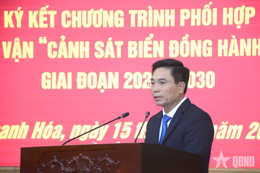 Phát biểu tại lễ ký kết, đồng chí Nguyễn Doãn Anh khái quát tình hình phát triển kinh tế - xã hội, quốc phòng -an ninh của Thanh Hóa, nhấn mạnh vai trò đặc biệt quan trọng của hướng biển trong bối cảnh tình hình khu vực và thế giới diễn biến phức tạp.