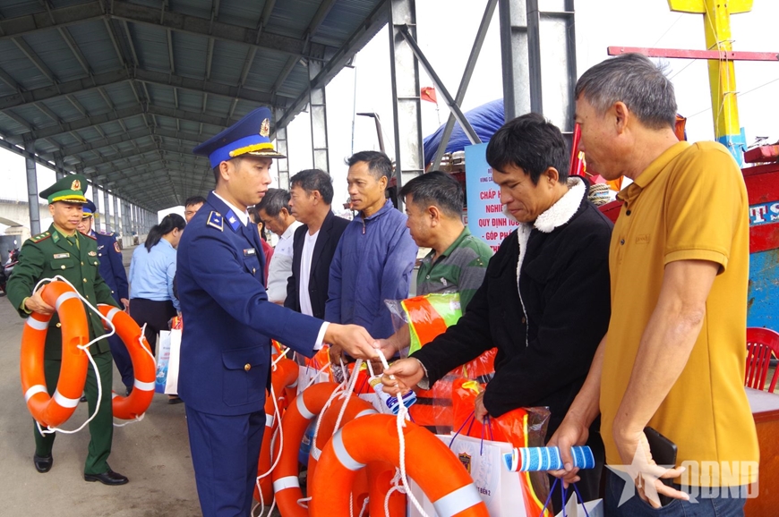 Ngày 25-12, Phòng Pháp luật (Vùng Cảnh sát biển 2) phối hợp với Hải đội 202 Cảnh sát biển; Đồn Biên phòng Triệu Vân, Bộ đội Biên phòng tỉnh Quảng Trị; Ủy ban nhân dân xã Nam Cửa Việt và Cảng cá Cửa Việt tổ chức tuyên truyền các quy định của pháp luật về hoạt động khai thác thủy sản, các quy định về chống khai thác hải sản bất hợp pháp, không báo cáo và không theo quy định (IUU) cho 150 ngư dân xã Nam Cửa Việt và các tàu cá đang neo tại cảng cá.