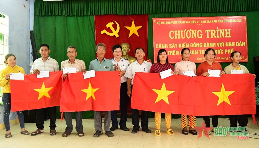 Tại xã Phổ Khánh, thị xã Đức Phổ, Bộ tư lệnh Vùng Cảnh sát biển 2 cùng với Ban Dân vận Tỉnh ủy Quảng Ngãi tổ chức tuyên truyền chống khai thác hải sản bất hợp pháp, không báo cáo và không theo quy định cho gần 100 bà con ngư dân trên địa bàn, kết hợp trao 50 suất quà tặng các gia đình chính sách, gia đình ngư dân có hoàn cảnh khó khăn; trao 200 lá cờ Tổ quốc và nhiều tờ rơi tuyên truyền.