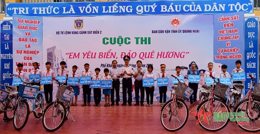 Tại cuộc thi “Em yêu biển, đảo quê hương”, Bộ Tư lệnh Vùng Cảnh sát biển 2 trao 20 giải thưởng Cuộc thi vẽ tranh với chủ đề “ Biển, đảo Tổ quốc và Người chiến sĩ Cảnh sát biển” mà đơn vị đã phối hợp với Phòng Giáo dục và Đào tạo thị xã Đức Phổ phát động trong học sinh của 3 trường (Trường THCS Phổ Khánh, Phổ Cường, Phổ Hòa) trước đó. Dịp này, Bộ tư lệnh Vùng Cảnh sát biển 2 trao 15 xe đạp, 30 suất học bổng tặng các em học sinh vượt khó vươn lên học giỏi; trao tặng 3 bộ máy vi tính cho 3 trường.