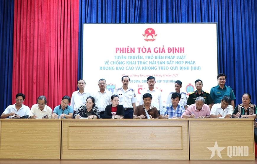 Ngày 13-11, Bộ tư lệnh Vùng Cảnh sát biển 3 phối hợp với Tòa án nhân dân TP Hồ Chí Minh, Tòa án quân sự Quân khu 7 tổ chức phiên tòa giả định, tọa đàm và trao đổi pháp luật về phòng, chống khai thác IUU tại phường Vũng Tàu và xã Long Hải (TP Hồ Chí Minh).