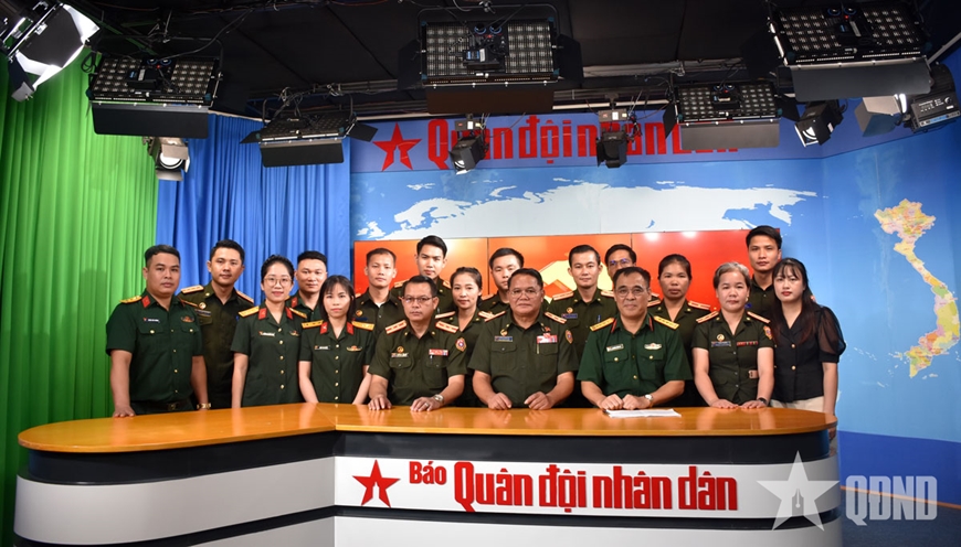 Đoàn cán bộ Báo Quân đội nhân dân Lào tham quan trường quay Báo Quân đội nhân dân.