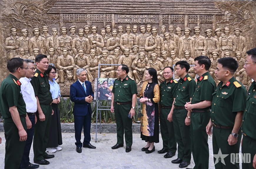 Cán bộ, phóng viên Báo Quân đội nhân dân về nguồn thăm di tích Trường dạy làm báo Huỳnh Thúc Kháng, tháng 4-2025. Ảnh: VIỆT TRUNG