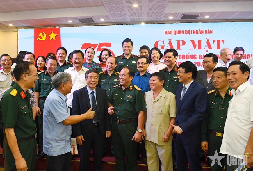 Đại biểu các thế hệ nhà báo Báo Quân đội nhân dân gặp mặt kỷ niệm 75 năm Ngày truyền thống. Ảnh: TUẤN HUY |