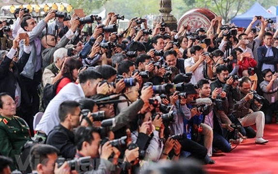 | Phóng viên các cơ quan báo chí tác nghiệp. Ảnh: Báo Nhân dân. |