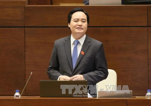Làm rõ hơn thắc mắc của ĐB Triệu Thị Thu Phương (Bắc Kạn) về tính ổn định của kỳ thi quốc gia, Bộ trưởng cho biết về nội dung phương thức thi là tương đối ổn định. Tuy nhiên, trong quá trình đổi mới, cần gắn với chương trình sách giáo khoa. Bộ sẽ rút kinh nghiệm để có sự chuẩn bị, truyền thông tốt hơn, để xã hội biết, đồng hành.